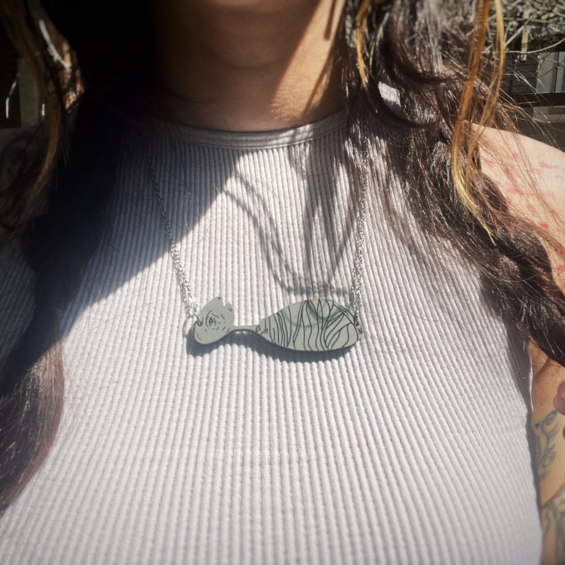 Eraserhead Baby Necklace – Handmade Matte Grey Acrylic Charm on Stainless Steel Chain | Inspired by David Lynch’s Eraserhead