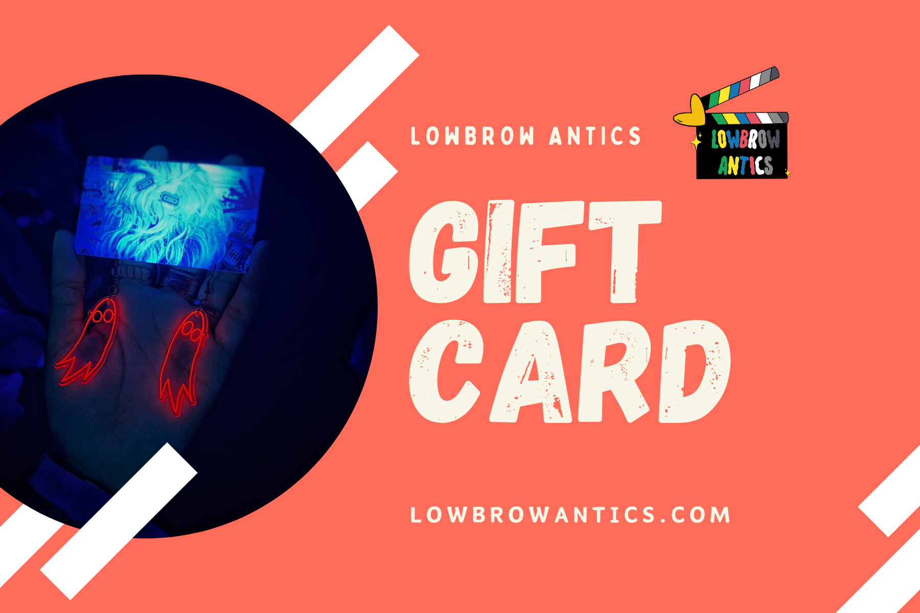 Making the perfect gift-giving decision can be a headache, but Lowbrow Antics has the cure: Gift Cards! Get your favorite film fan a $10, $25, $50, or $100 card and let them take the wheel in picking out their perfect movie-inspired gift!