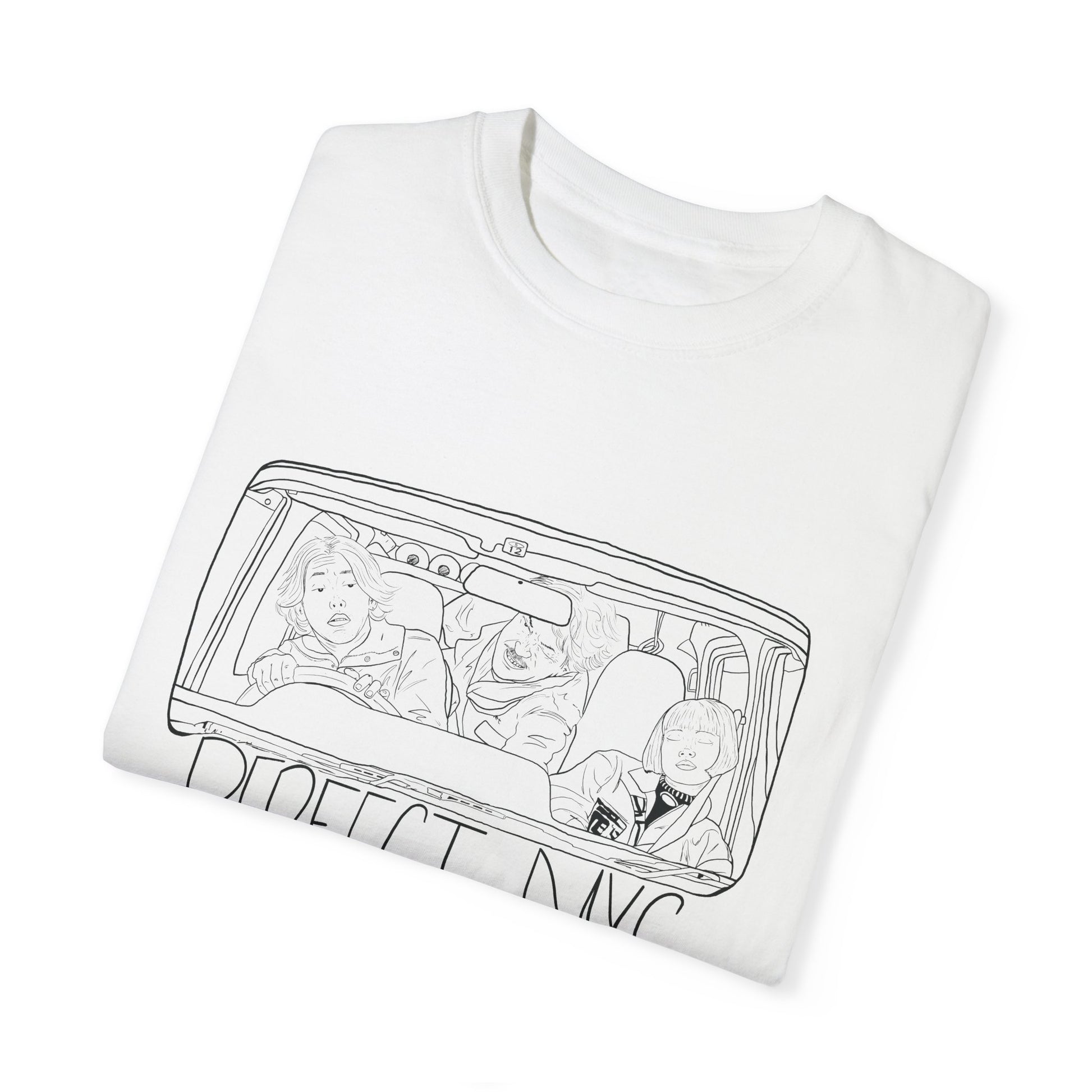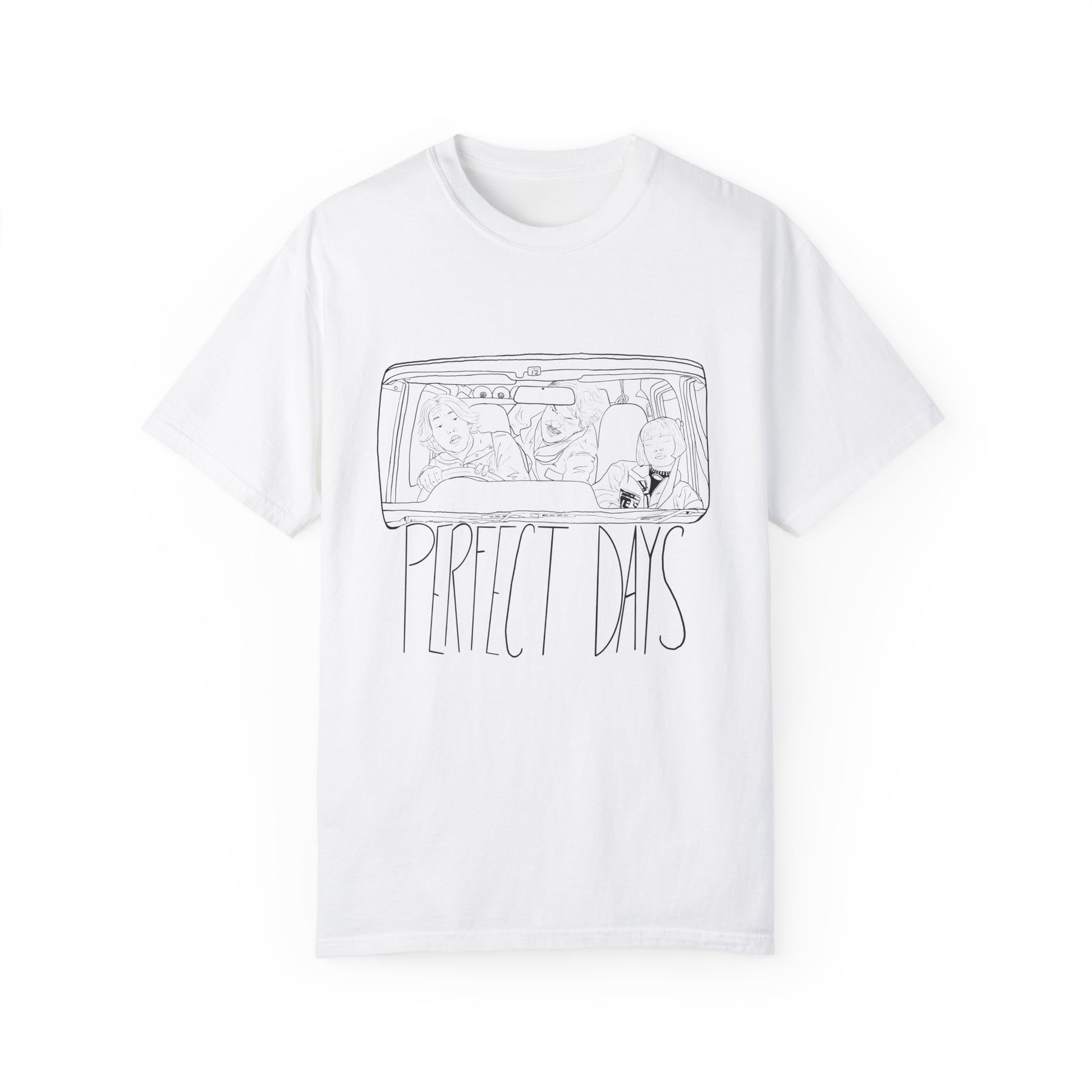 Plain white Comfort Colors tee with original illustration by Lowbrow Antics inspired by the film Perfect Days. Special release for Lowbrow Antics Birthday! Woohoo!