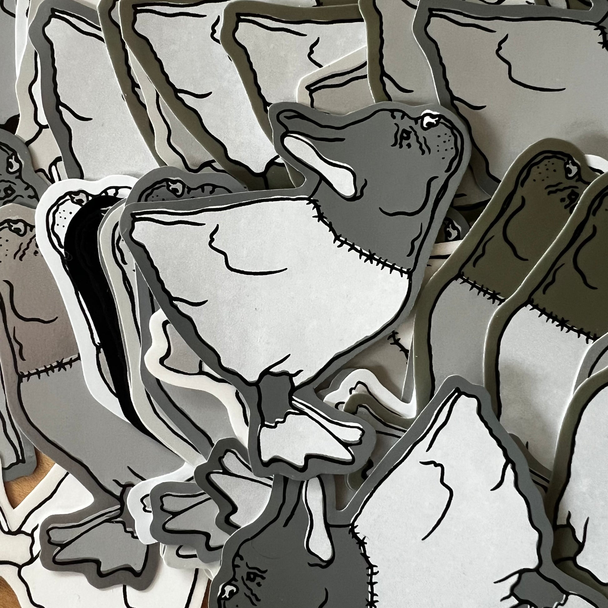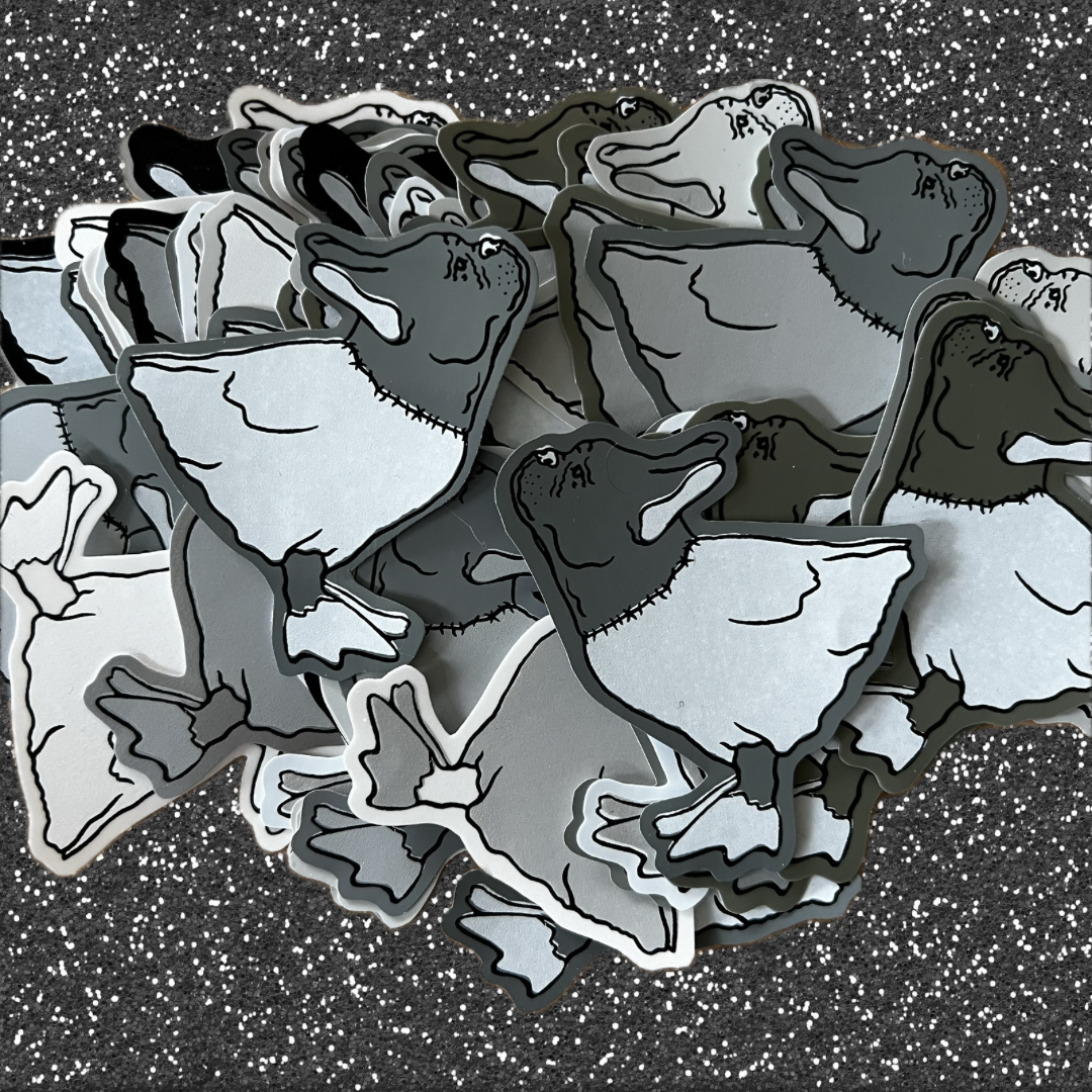 Add a touch of whimsical charm to your accessories with the Poor Things Animal Hybrid Stickers. Inspired by the unique creatures of the film Poor Things, these hand-drawn vinyl stickers feature a cute dog/duck hybrid in grayscale. Weather-resistant and perfect for laptops, water bottles, and journals, these stickers are a must-have for fans of quirky art and unique films.